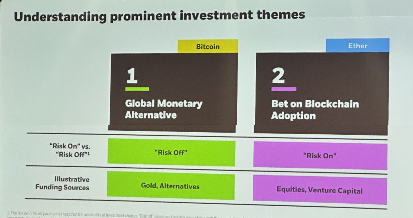 Không ngờ, bước ngoặt tiềm năng của Ether có thể đến từ một nguồn đáng ngạc nhiên. Vào ngày 3 tháng 10, BlackRock, một trong những nhà cung cấp Ether ETF hàng đầu, đã nhấn mạnh rằng đề xuất giá trị của Ether phù hợp hơn với các tài sản “rủi ro”, định vị nó như một đối thủ cạnh tranh với cổ phiếu và vốn đầu tư mạo hiểm. Điều này trái ngược với câu chuyện cốt lõi của Bitcoin là “vàng kỹ thuật số”, theo bài đăng của Bruce Florian, một Bitcoiner và người sáng tạo nội dung.