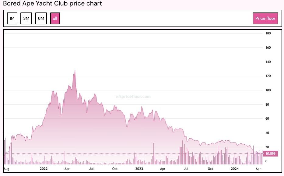 Trong lịch sử, BAYC là bộ sưu tập NFT hàng đầu, đã đạt hơn 3 tỷ USD, theo dữ liệu CryptoSlam.