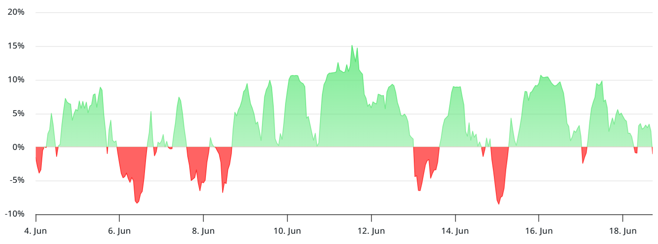 Tỷ lệ tài trợ trên hợp đồng tương lai vĩnh viễn đóng vai trò là thước đo chính để hiểu tâm lý thị trường. Trong điều kiện trung lập, tỷ lệ tài trợ hàng năm phải nằm trong khoảng từ 5% đến 15%, cho thấy các vị thế long đang trả phí bảo hiểm để giữ cho các giao dịch mở. Khi thị trường chuyển sang xu hướng giảm, tỷ lệ này có xu hướng giảm xuống dưới phạm vi đó.