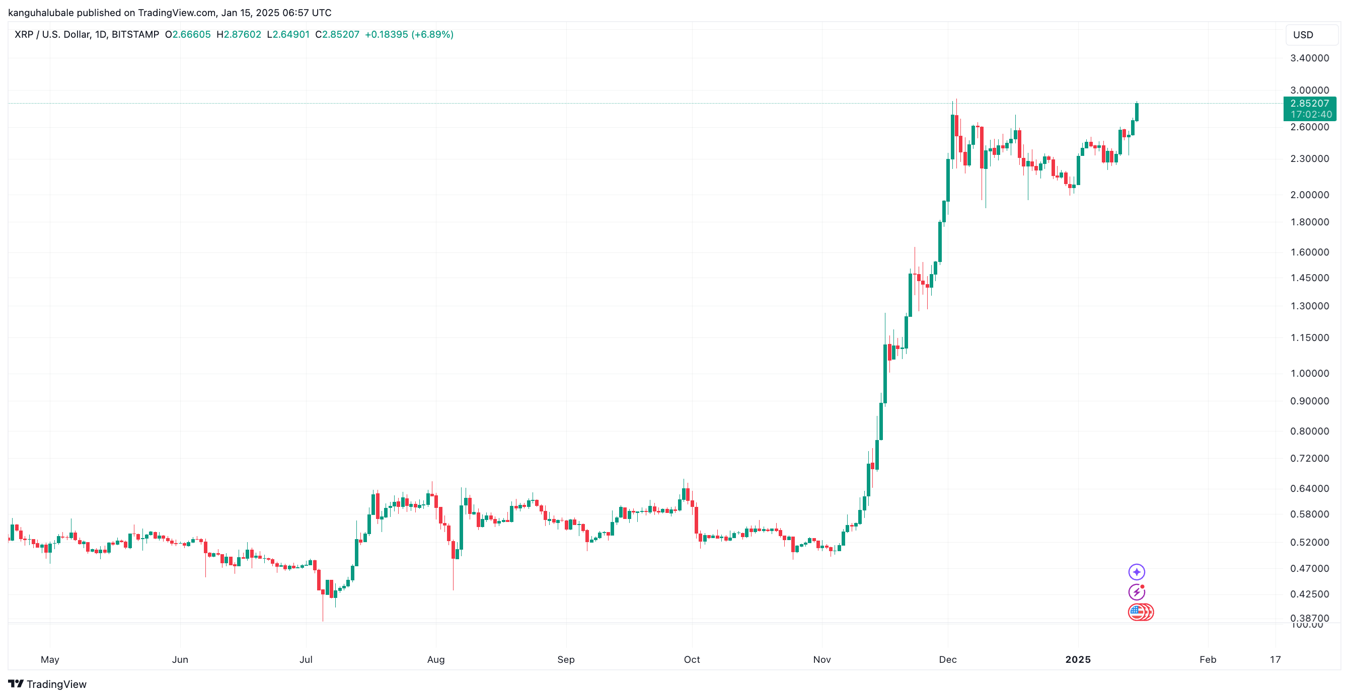 Cờ hiệu, được hình thành từ ngày 2 tháng 12 năm 2024, có mục tiêu ngắn hạn là 3,70 USD dựa trên các mức thoái lui Fibonacci, theo phân tích của Mikybull Crypto. Điều này thể hiện mức tăng 32% so với mức giá hiện tại là 2,85 USD.