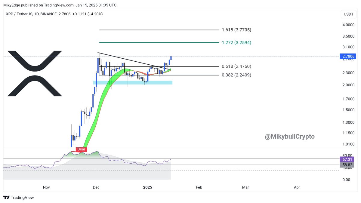 Giá XRP tăng lên trên ngưỡng tâm lý 2,50 USD vào ngày 11 tháng 1 đã phá vỡ mô hình cờ hiệu tăng giá, như nhà giao dịch độc lập Mikybull Crypto đã chỉ ra.