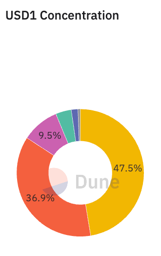 Sự tập trung token USD1. Nguồn: Dune.