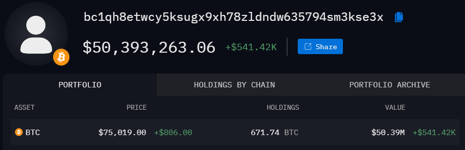 Ví cá voi “bc1qa.” Nguồn: Arkham Intelligence.