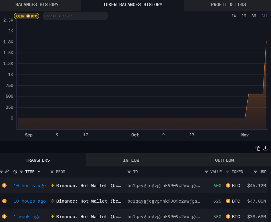 Một con cá voi Bitcoin khác, có địa chỉ “bc1qa”, đã mua hơn 92 triệu USD Bitcoin vào ngày 7 tháng 11. Các giao dịch của con cá voi này cho thấy nó chỉ bắt đầu mua Bitcoin vào tuần trước, bắt đầu bằng giao dịch mua BTC trị giá 52 triệu USD vào ngày 1 tháng 11.