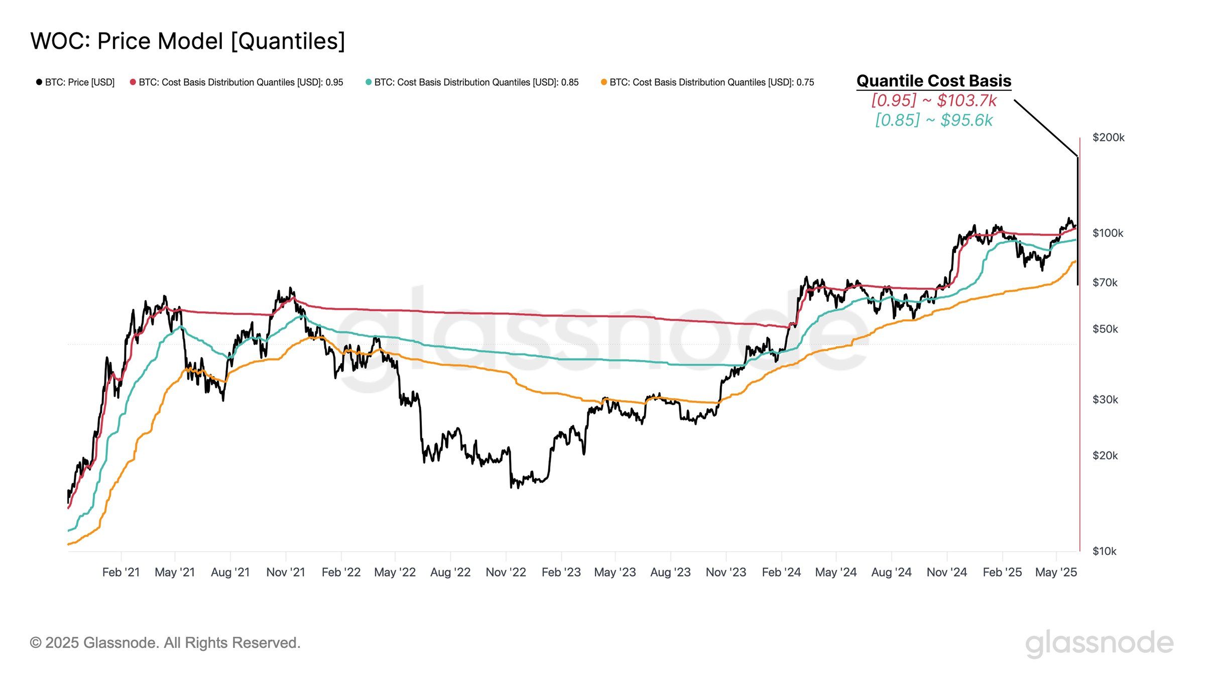 Điều này cho thấy chỉ có 5% Bitcoin được mua trên mức này, làm cho 103,700 USD trở thành một vùng hỗ trợ mạnh.