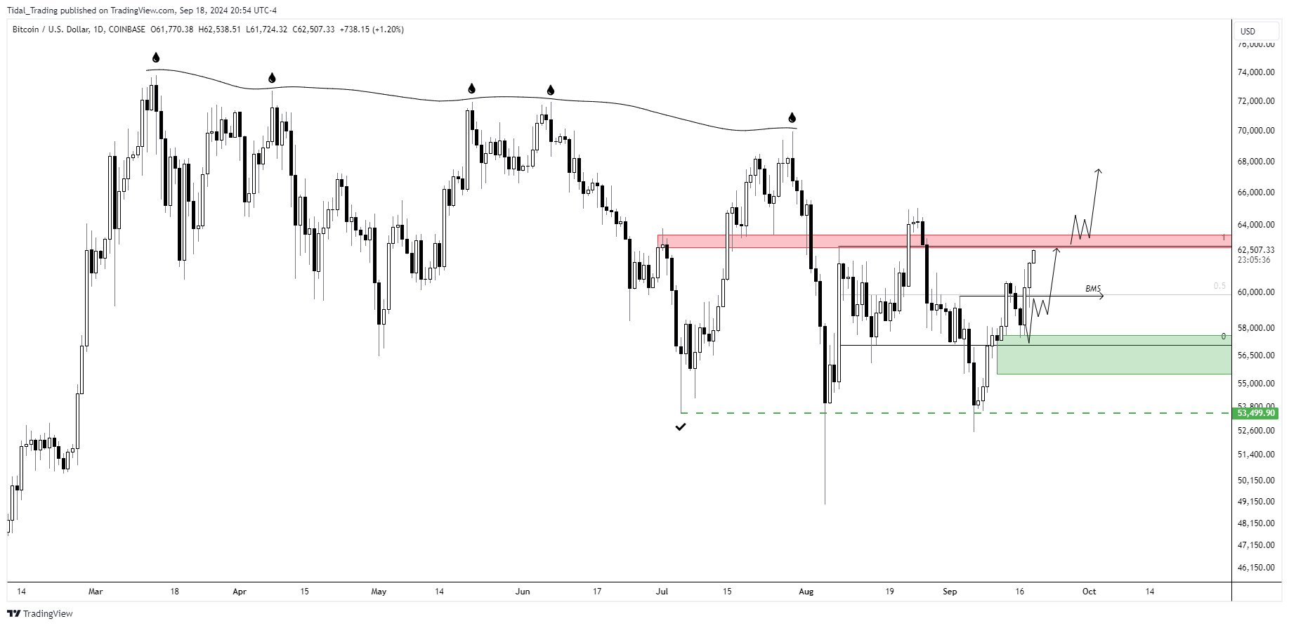 Nếu chúng ta có thể vượt qua mức 63.000 đô la và giữ trên mức này khi đóng cửa HTF (ít nhất là 1 ngày), thì khi xét đến bối cảnh HTF, chúng ta có thể thực sự tiến tới ATH.