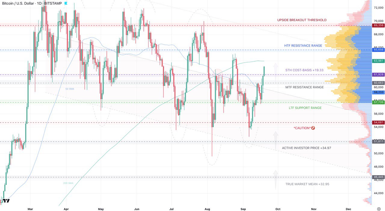 Vùng giữa 60.000 USD có ý nghĩa quan trọng vì nó chứa nhiều đường xu hướng cần thiết để hoạt động như mức hỗ trợ. Bao gồm cơ sở chi phí tổng hợp cho nhóm nhà đầu tư ngắn hạn của Bitcoin—mức này thường đi kèm với mọi thị trường tăng giá.