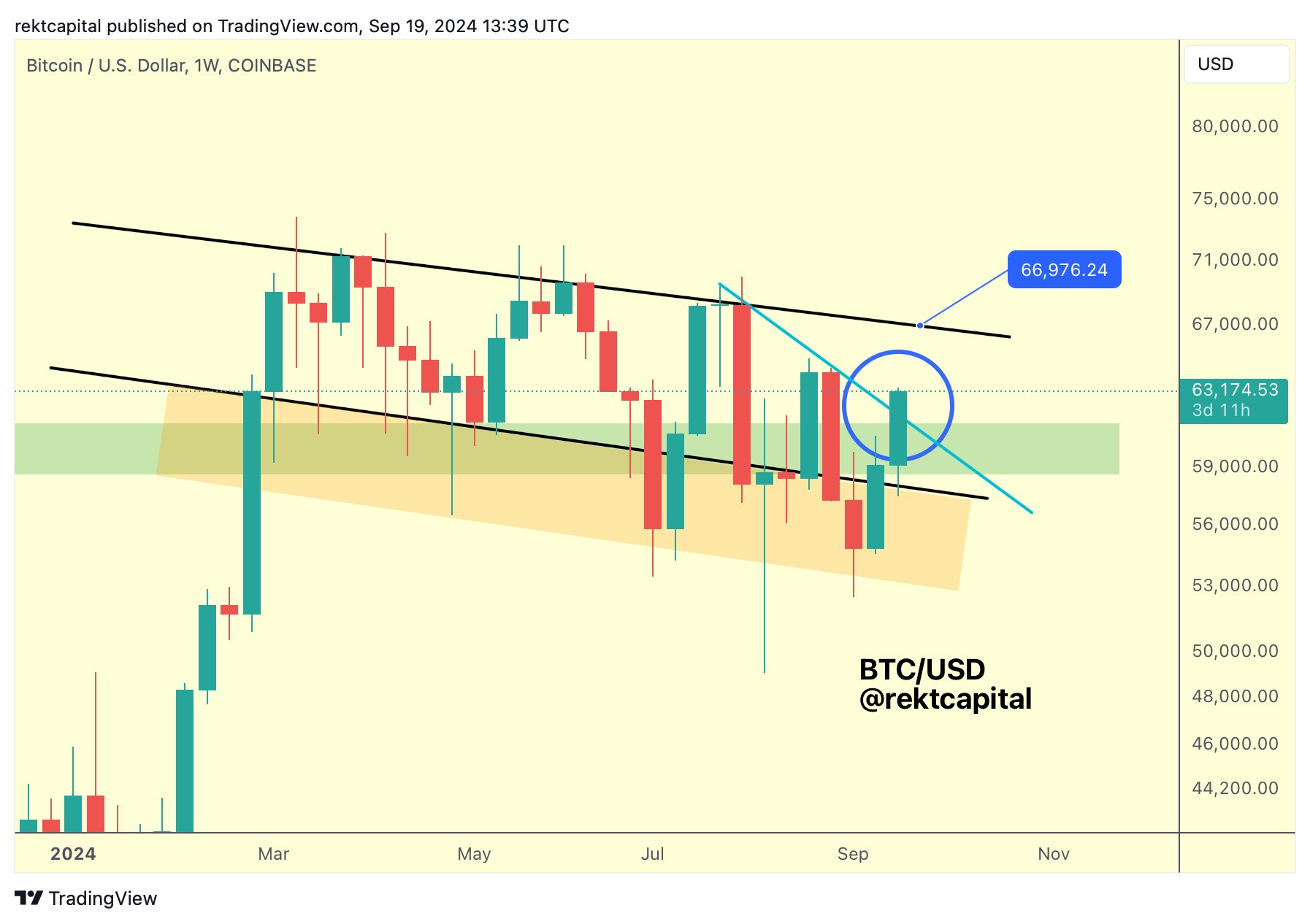Trong khi đó, nhà phân tích nổi tiếng Rekt Capital cho biết Bitcoin đã bắt đầu tiến triển trong kênh giảm giá kéo dài nhiều tháng.