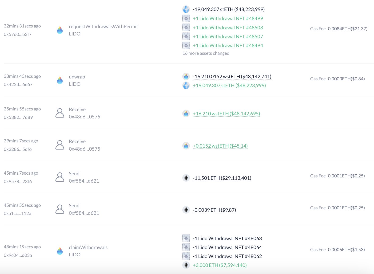 Tuy nhiên, áp lực bán từ nhà tạo lập thị trường sắp kết thúc vì Jump Trading chỉ còn 21.394 Wrapped Lido Staked ETH (wstETH) trị giá 63 triệu USD, theo bài đăng ngày 7 tháng 8 của Lookonchain.