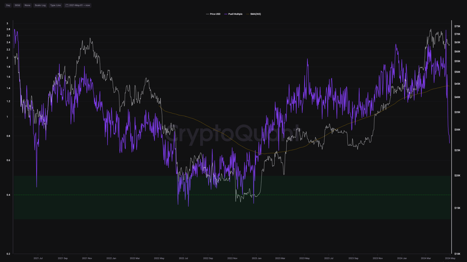 Trích dẫn biểu đồ Puell Multiple trong 365 ngày – một thước đo ước tính mức độ áp lực bán từ các thợ đào – Ju cho biết các thợ đào hiện tại không có dấu hiệu đầu hàng.