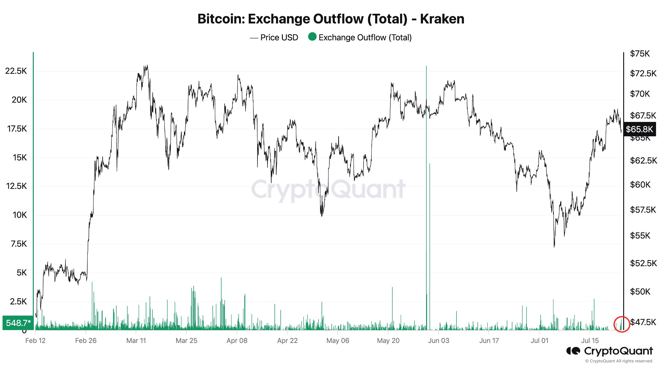 Bitcoin: dòng tiền ra khỏi sàn giao dịch (tổng cộng), Kraken. Nguồn: Ki Young Ju.