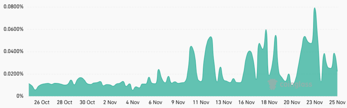 Tỷ lệ tài trợ trung bình 8 giờ của DOGE. Nguồn: CoinGlass.