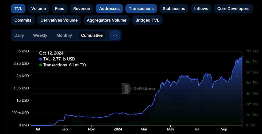 Trong ba ngày qua, Base đã trải qua một đợt tăng đột biến đáng kể về khối lượng giao dịch, liên tục xử lý hơn 6 triệu giao dịch mỗi ngày. Theo dữ liệu của DeFillama, mạng lần đầu tiên đạt đến đỉnh điểm này vào ngày 10 tháng 10, khi ghi nhận 6,2 triệu giao dịch.