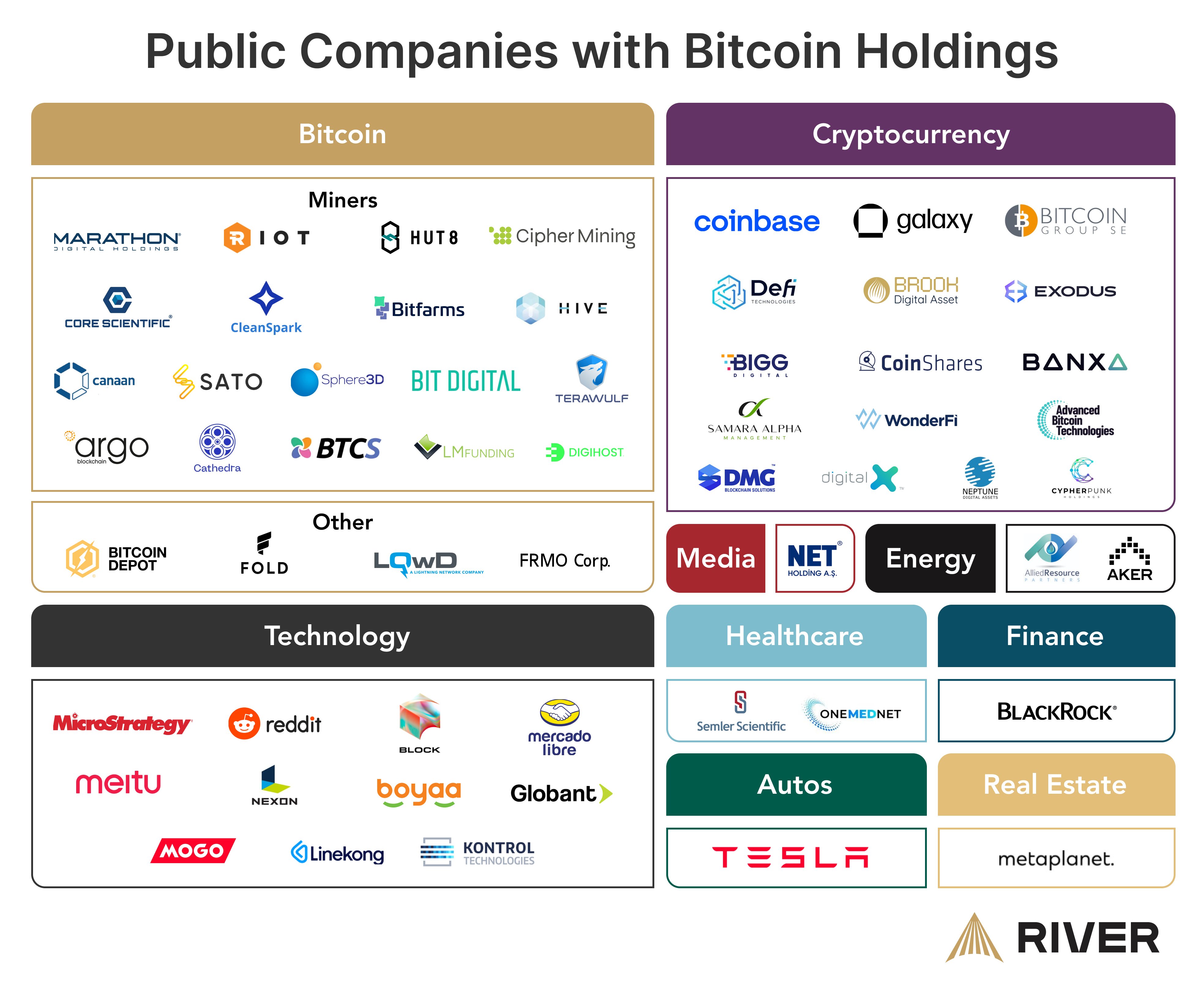 Các công ty đại chúng nắm giữ Bitcoin. Nguồn: River.