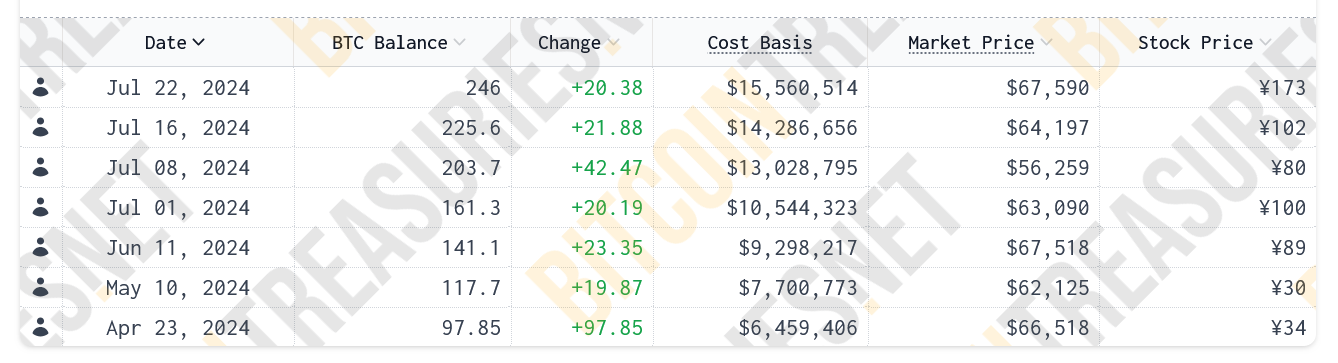 Cho đến nay, Metaplanet đã mua 246 Bitcoin — trị giá 13,95 triệu USD theo giá thị trường hiện tại — từ bảy lần mua riêng biệt, dữ liệu của Bitcoin Treasuries cho thấy.