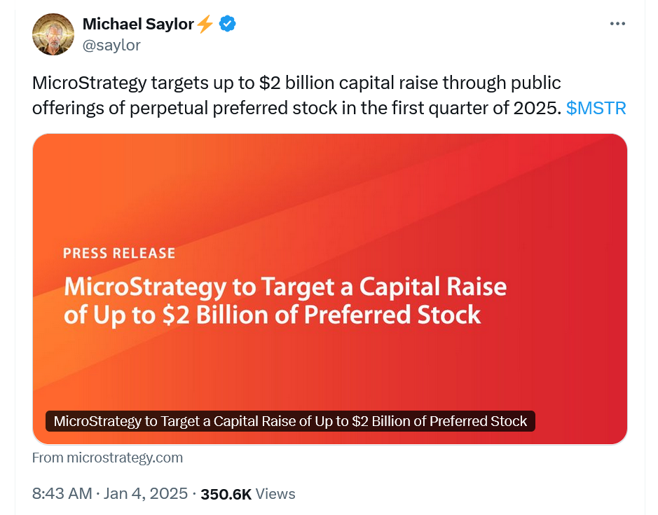 MicroStrategy, công ty nắm giữ Bitcoin lớn nhất, đang để mắt tới việc huy động 2 tỷ USD từ đợt chào bán cổ phiếu ưu đãi vĩnh viễn để mua thêm Bitcoin.