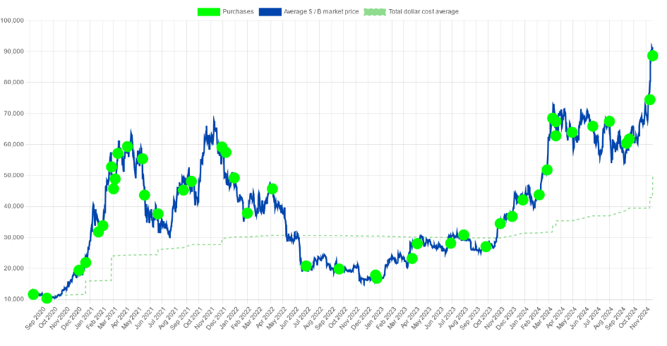Công ty của Michael Saylor hiện đã tăng 133% trong chiến lược đầu tư Bitcoin của mình khi mua Bitcoin với giá mua trung bình là 39.292 USD.
