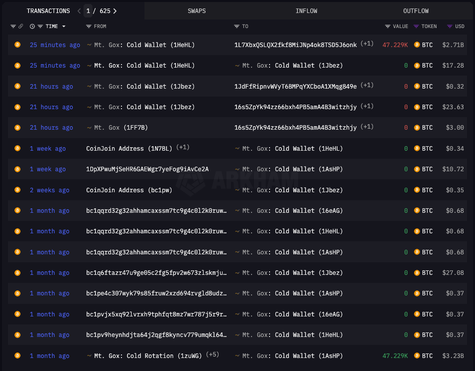 Sàn giao dịch tiền điện tử Nhật Bản Mt. Gox đã chuyển 47.229 Bitcoin (BTC) — trị giá 2,71 tỷ USD theo giá hiện tại — đến một địa chỉ ví mới trong giao dịch lớn đầu tiên kể từ tháng 5.