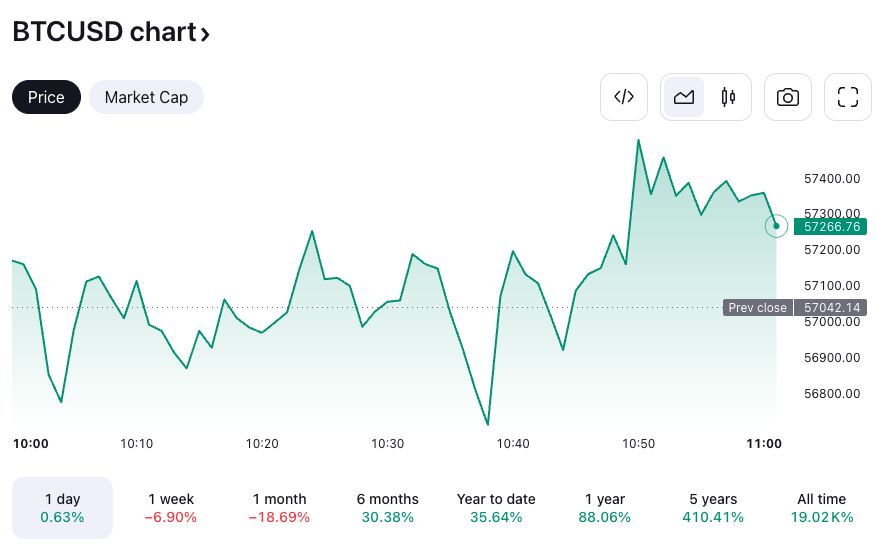 Giá Bitcoin đã giảm mạnh vào ngày 4 tháng 7 trước khi giảm mạnh hơn nữa trong những giờ tiếp theo, hiện được giao dịch ở mức 57.328 USD, theo dữ liệu của TradingView.
