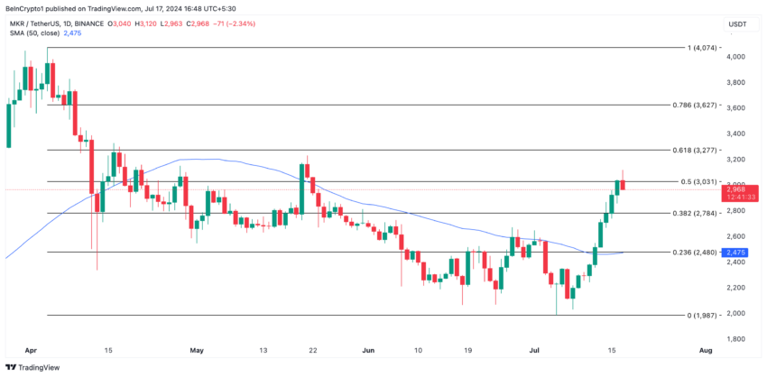 Giá của Maker (MKR) đã tăng đáng kể trong tuần qua. Giá trao đổi ở mức 3.024 USD tại thời điểm viết bài, giá của altcoin này đã tăng 33% trong bảy ngày qua.