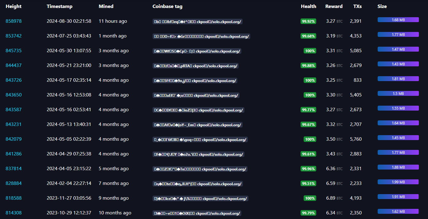 Do sự nổi bật của các công ty khai thác lớn như Riot Blockchain và Marathon Digital, nắm giữ lượng lớn sức mạnh băm, nên rất hiếm khi có thợ đào đơn lẻ nào xác thực thành công một khối.