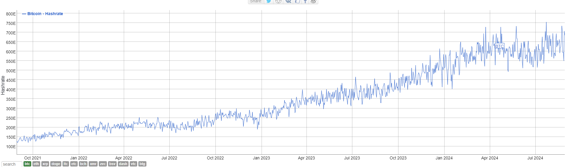Theo BitInfoCharts, hashrate của Bitcoin đạt mức cao nhất mọi thời đại là 754 EH/s vào ngày 23 tháng 7.