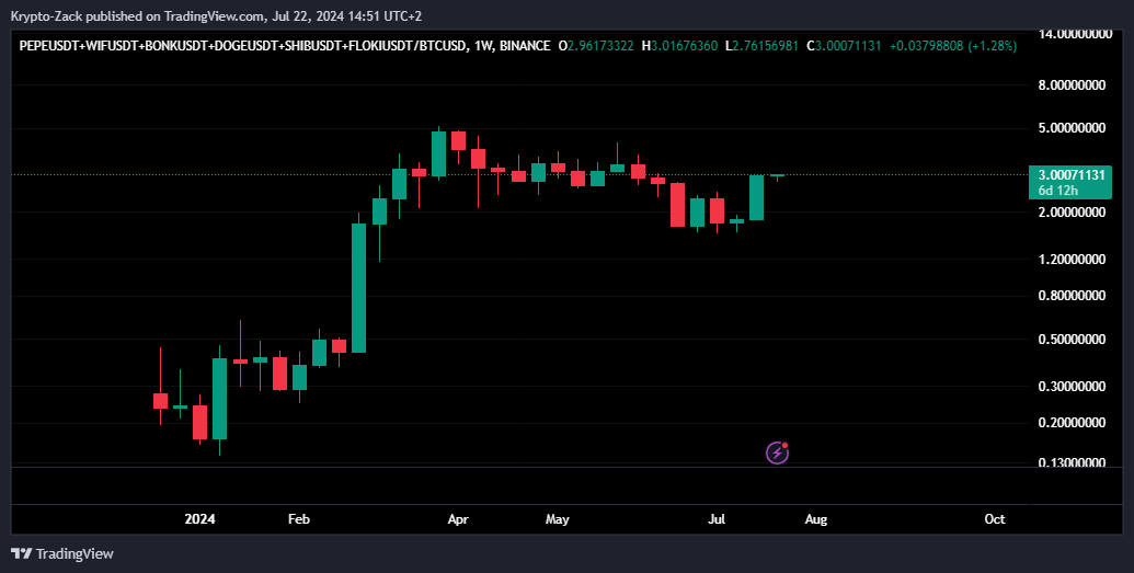Chỉ số này là memecoin hàng đầu so với Bitcoin, tính từ tháng 12 năm 2023. Mùa memecoin tiếp theo đang diễn ra.