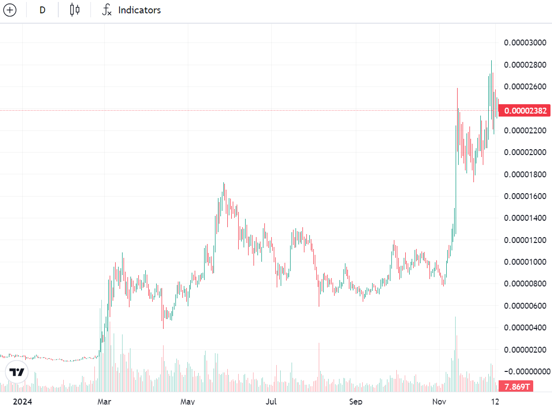 Pepe tăng 1.600% YTD, trở thành tiền điện tử có hiệu suất tốt thứ hai trong năm 2024