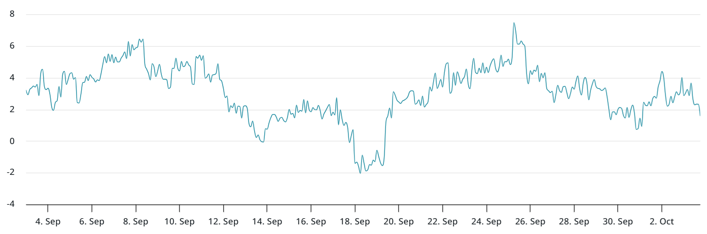 Delta skew của quyền chọn Ether vẫn nằm trong phạm vi trung lập từ +6% đến -6%, cho thấy quyền chọn bán (put) và quyền chọn mua (call) đang giao dịch ở mức tương đương. Nếu các nhà giao dịch lạc quan hơn, nhu cầu về các chiến lược tăng giá sẽ đẩy chỉ báo xuống thấp hơn, nhưng sự thay đổi như vậy vẫn chưa xảy ra.