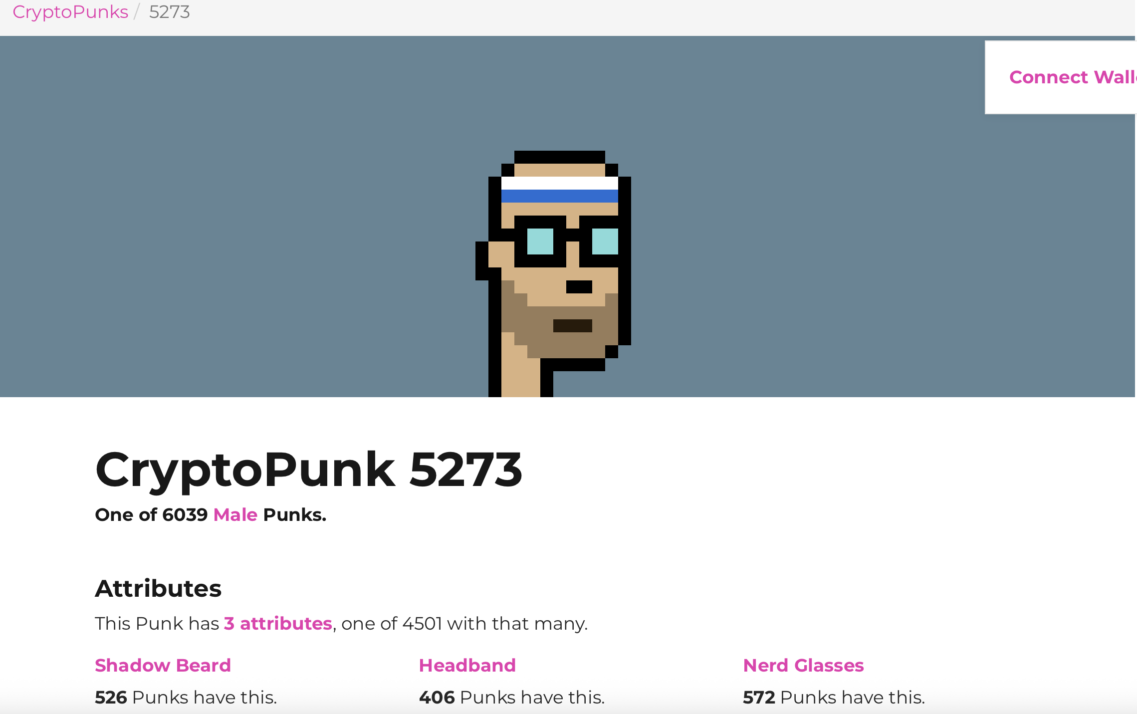 Dữ liệu on-chain cho thấy CryptoPunk #5273 được mua vào ngày 25/8 với giá 65 Ether (ETH) — khoảng 283.000 USD tại thời điểm đó, trước khi được chuyển sang một địa chỉ ví khác vào hôm thứ Hai.