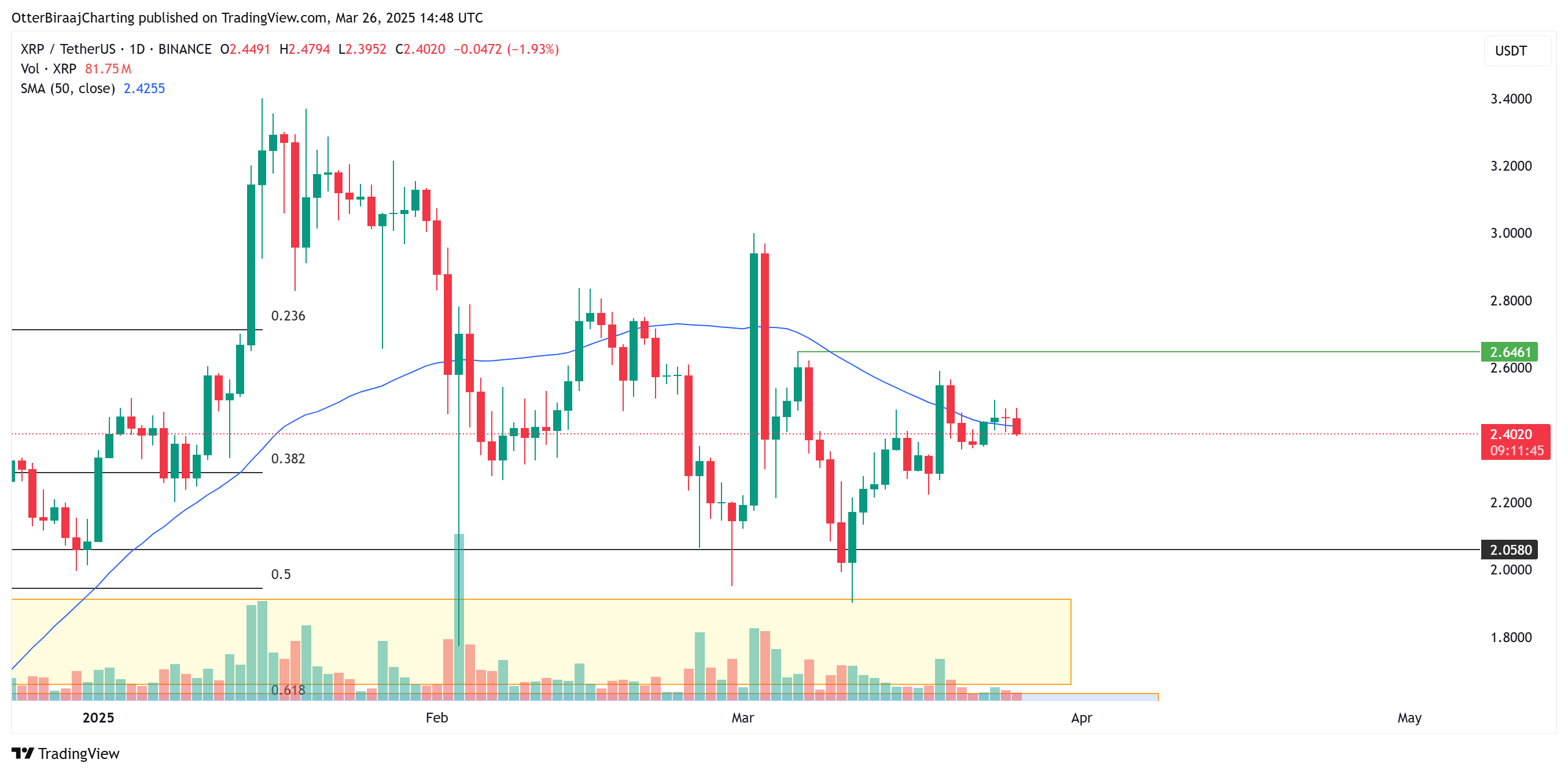 Mức quan trọng để XRP lấy lại vẫn là 2,50 USD, đây là ngưỡng hỗ trợ và kháng cự quan trọng trong suốt bốn tháng giá biến động vừa qua.