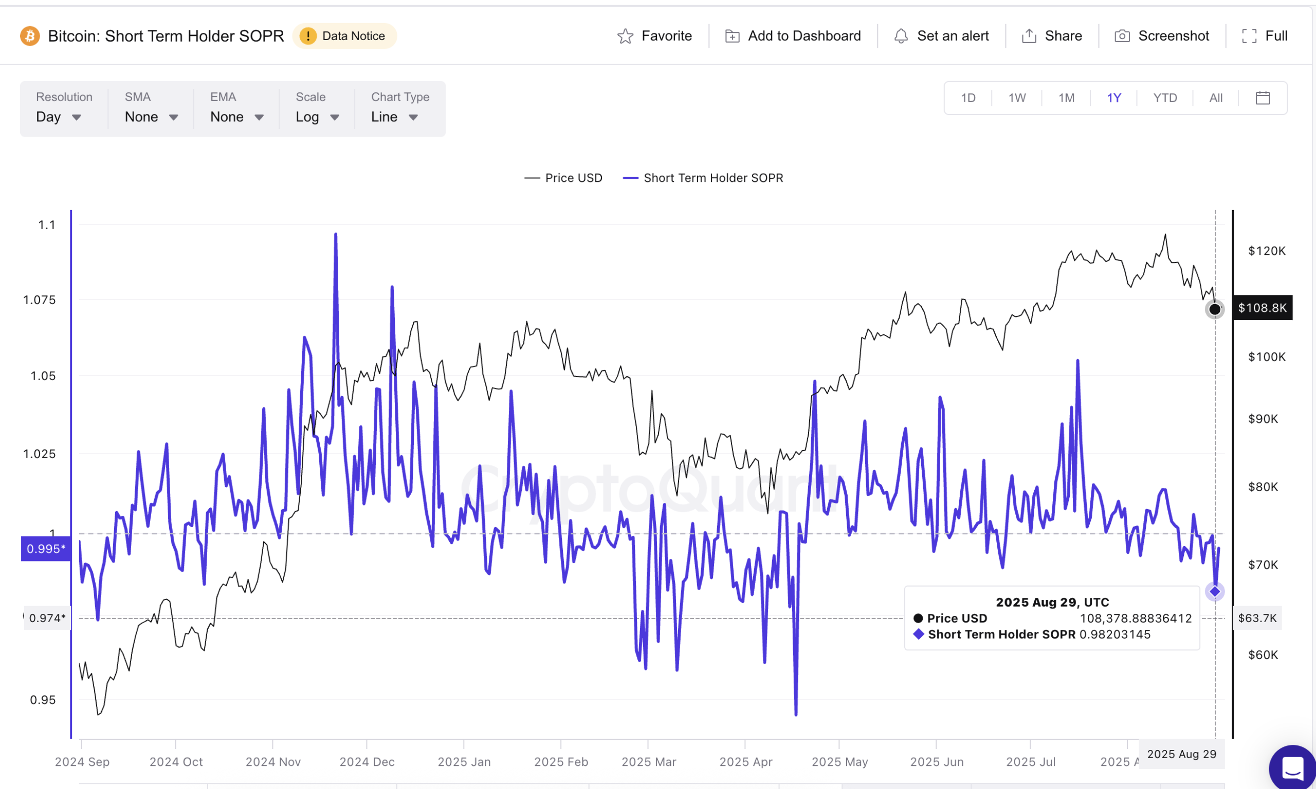 SOPR của nhà đầu tư ngắn hạn cho thấy những người yếu tay đang rời khỏi