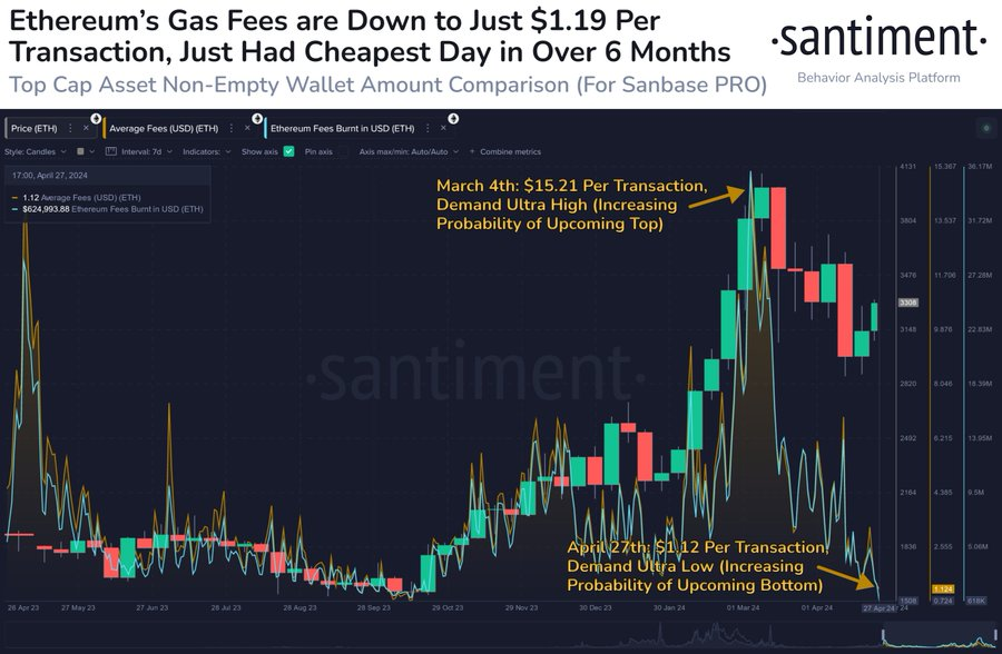 Đáng chú ý, công ty phân tích blockchain Santiment đã báo cáo rằng việc tăng giá trùng hợp với việc phí giao dịch giảm đáng kể, đạt mức thấp nhất trong sáu tháng.