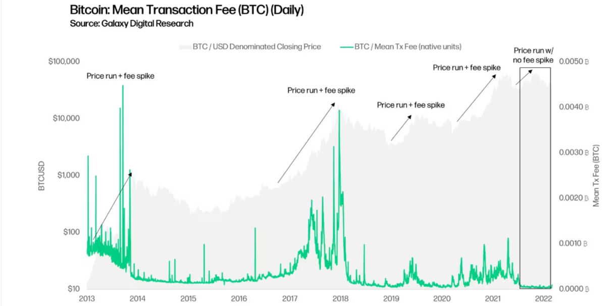 Phí giao dịch BTC. Nguồn: Galaxy Digital.