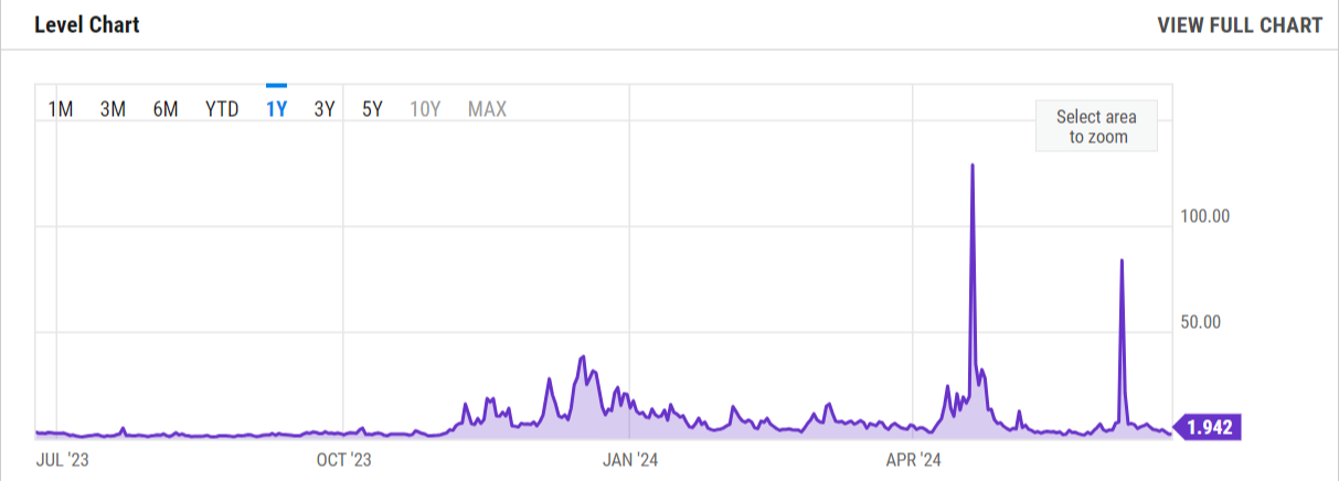 Mặt khác, phí gas Ether (ETH) cũng đã đạt mức thấp mới, với giá gas đạt mức thấp nhất là 1 gwei, mức thấp nhất trong nhiều năm. Phí gas hiện tại trên mạng Ethereum là khoảng 4,5 gwei.