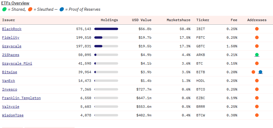 Thị phần các đơn vị phát hành Bitcoin ETF. Nguồn: Dune.
