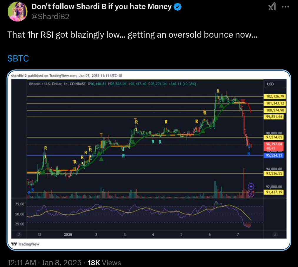 Việc Bitcoin giảm 5% trong một ngày đã gây ra những tác động nghiêm trọng đến RSI trong khung thời gian thấp.