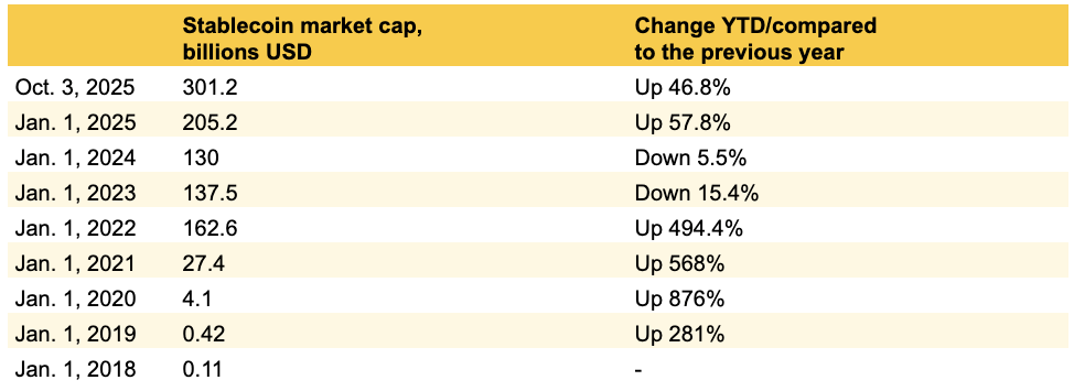 Khi đạt ngưỡng 300 tỷ USD, thị trường stablecoin đang ở vị thế thuận lợi để phá vỡ tốc độ của năm 2024 trong bối cảnh cạnh tranh ngày càng gay gắt và làn sóng ra mắt stablecoin mới trong năm nay.