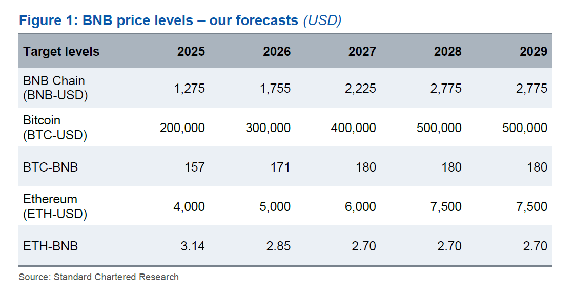 Theo báo cáo nghiên cứu, công ty quản lý tài sản dự kiến giá BNB sẽ tăng lên khoảng 1.275 USD cho mỗi token vào cuối năm 2025 và lên tới 2.775 USD vào cuối năm 2028.