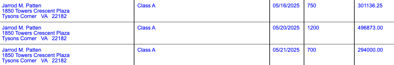 Theo báo cáo về đề xuất bán chứng khoán do Strategy nộp ngày 22 tháng 5, Patten đã bán 2.650 cổ phiếu MSTR trong khoảng thời gian từ 16 đến 21 tháng 5, với tổng giá trị gần 1,1 triệu USD.