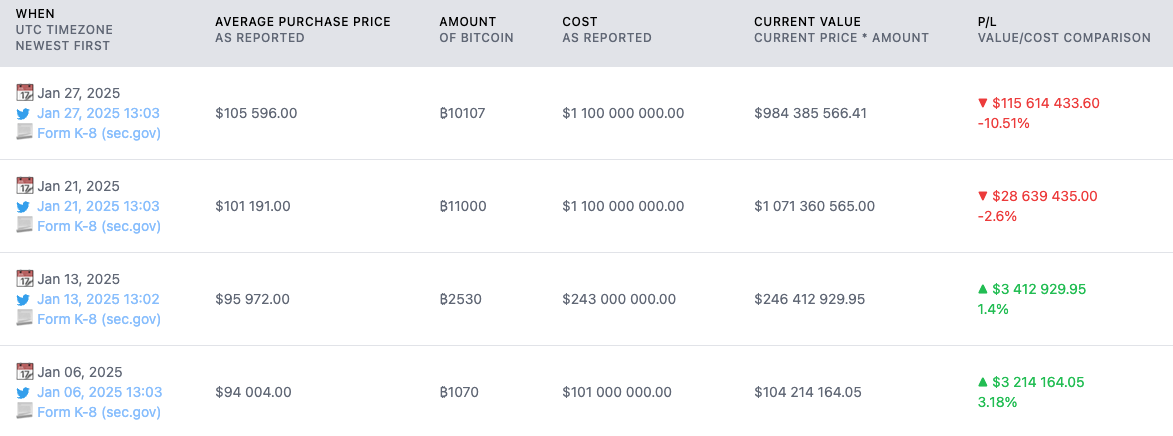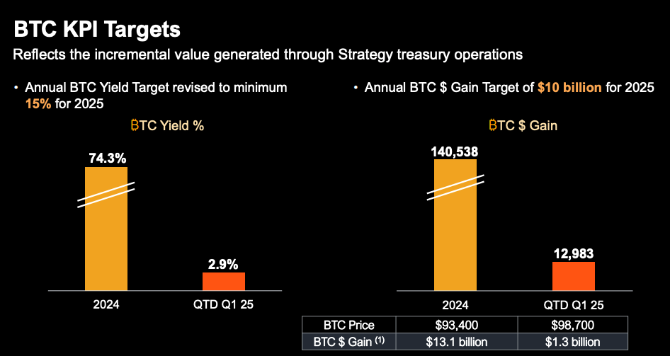 Sau khi ghi nhận khoản lỗ ròng 670 triệu USD trong quý 4 năm 2024, công ty đã hạ mục tiêu lợi suất BTC xuống còn 15% cho năm 2025.