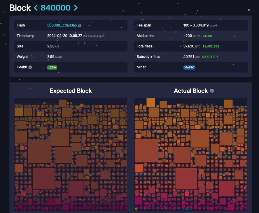 Sự ra mắt Bitcoin Runes trùng với thời điểm Bitcoin halving lần thứ tư. Kết quả là khối lượng giao dịch tăng vọt trên blockchain Bitcoin. Doanh thu từ khai thác Bitcoin (BTC) lần đầu tiên vượt mốc 100 triệu USD, ghi nhận thu nhập hàng ngày cao nhất mọi thời đại là 107,7 triệu USD.