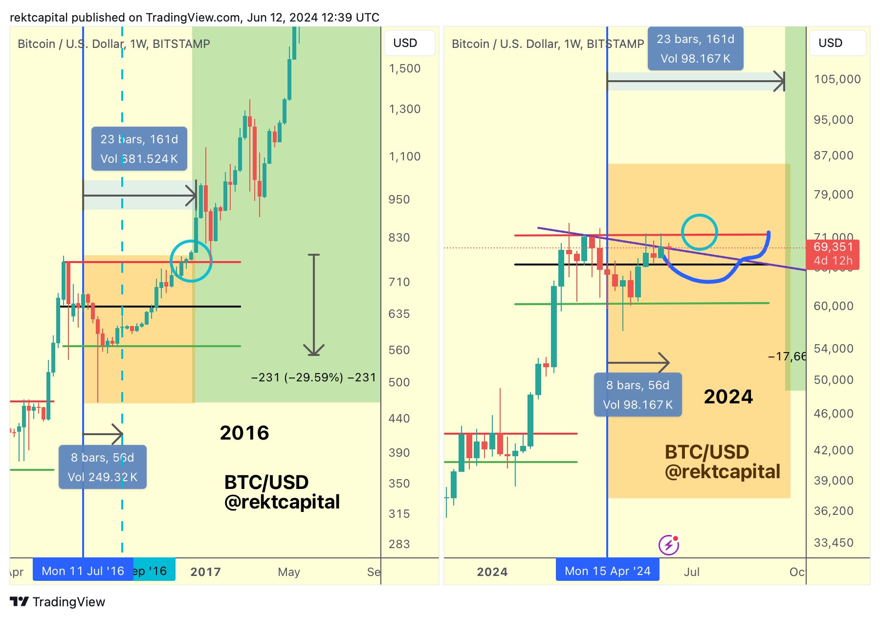 Hỗ trợ BTC hàng tuần. Nguồn: Rekt Capital.