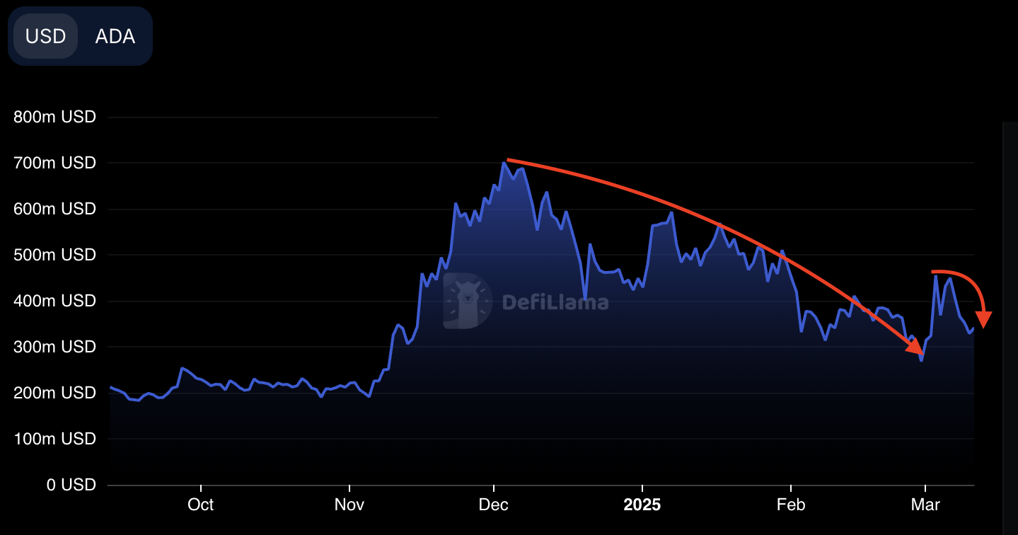 - TVL của Cardano đã giảm mạnh từ 529,8 triệu USD vào ngày 3 tháng 3 xuống còn 317,9 triệu USD vào ngày 31 tháng 3.