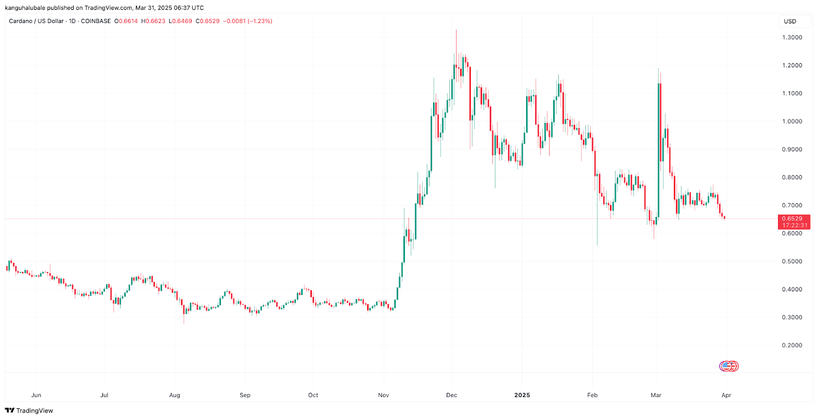 Giá Cardano (ADA) tiếp tục xu hướng giảm vào ngày 31 tháng 3, giảm 4,5% trong 24 giờ qua và giao dịch ở mức 0,6529 USD.