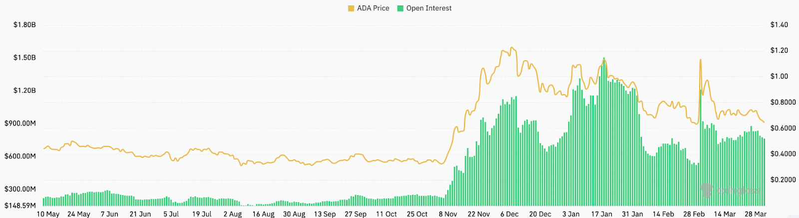 Một yếu tố khác cản trở giá ADA là sự thiếu nhiệt tình trên thị trường phái sinh, thể hiện qua mức lãi suất mở và tỷ lệ tài trợ có trọng số thấp.