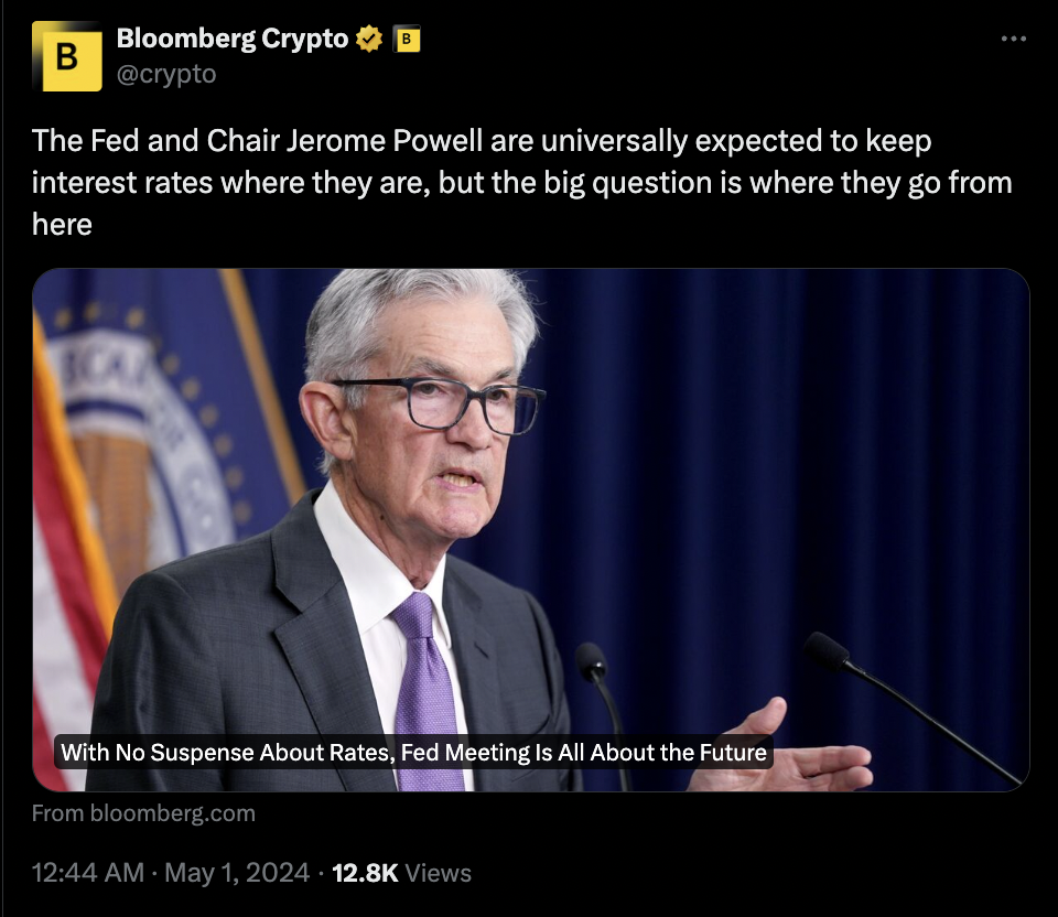 Giá Bitcoin giảm vào ngày 1 tháng 5, chủ yếu là do dự đoán về quyết định lãi suất của Cục Dự trữ Liên bang vào cuối ngày hôm nay, trong khi các nhà đầu tư cũng đang chú ý đến cuộc họp báo tiếp theo của Chủ tịch ngân hàng trung ương Hoa Kỳ Jerome Powell.