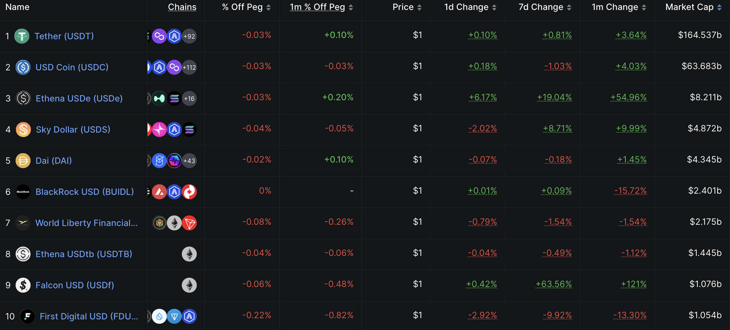 Top 10 stablecoin theo vốn hóa thị trường. Nguồn: DefiLlama.