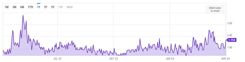 Thành công của Ethereum vào quý 1 năm 2024 diễn ra trong bối cảnh tiền điện tử này đạt gần mức giá cao nhất mọi thời đại vào tháng 3, điều này khiến chi phí giao dịch trên mạng tăng đột biến.