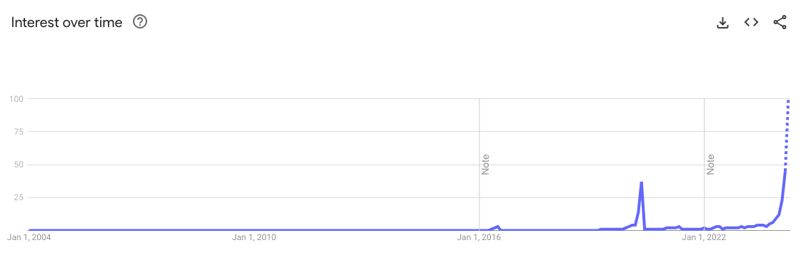 Google Trends lưu ý rằng giá trị 100 có nghĩa là “mức độ phổ biến cao nhất” cho cụm từ này.